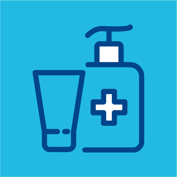 - Benutzen Sie regelmäßig die Handdesinfektionsmittel am Hauseingang.