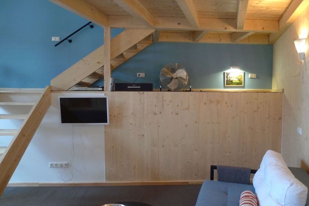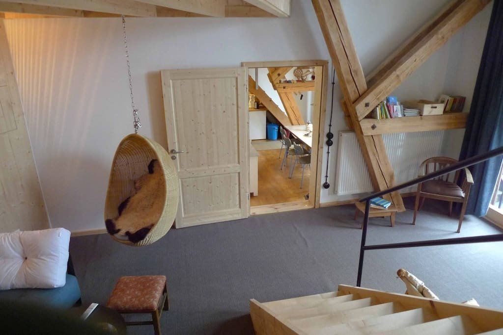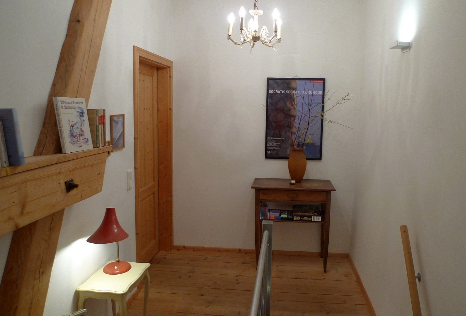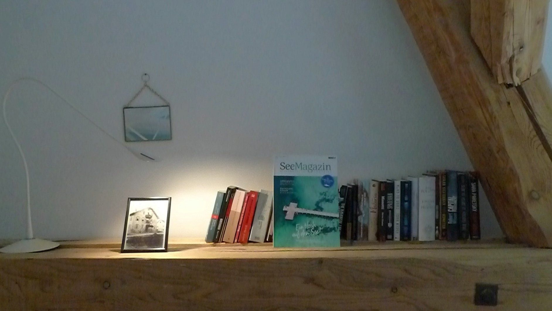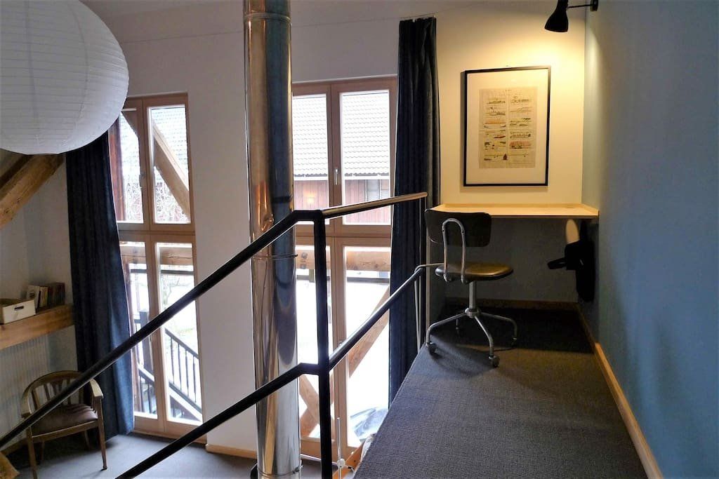 Auf der Zwischenebene haben wir einen kleinen Arbeitsplatz eingerichtet. WLAN steht in der ganzen Wohnung kostenlos zur Verfügung.